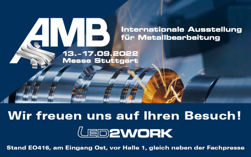 Vom 13. bis 17. September trifft sich dieses Jahr die internationale Metallbranche auf einer der größten Ausstellungen für Metallverarbeitung, der AMB in Stuttgart. Auch wir von LED2WORK sind mit an Bord, um die Zukunft der LED-Maschinenleuchten zu präsentieren.