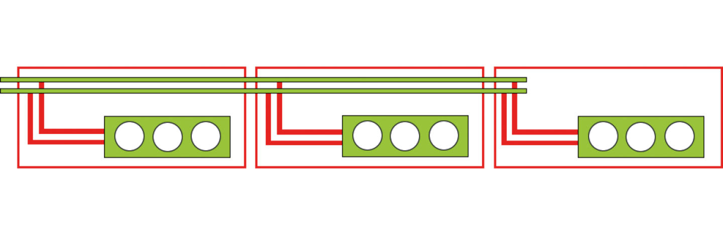 Die Installation muss so dimensioniert werden, dass auch die letzte Leuchte in der Kaskade noch eine ausreichende Versorgungsspannung erhält. Laut Norm DIN VDE 100 Teil 520 sollten in Beleuchtungsstromkreisen Spannungsverluste von maximal 6 Prozent auftreten.