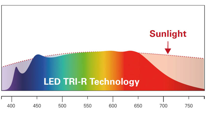 Spectral distribution of LEDs with TRI-R technology.
