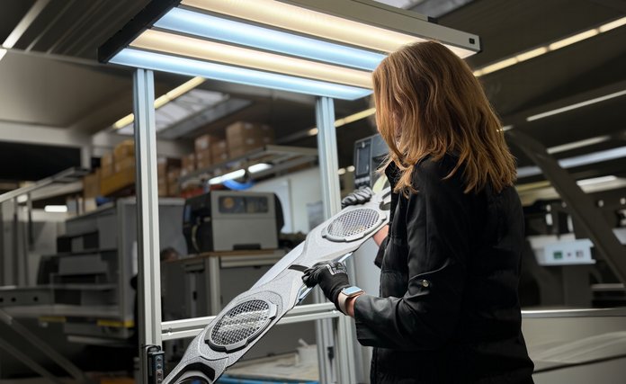 Für diese anspruchsvolle Oberflächenkontrolle setzt man auf spezialisierte Lichttechnik von LED2WORK. Die SurfaceOne ist eine hochwertige Arbeitsplatzleuchte, die speziell für visuelle Prüfprozesse entwickelt wurde und Mitarbeitende bei der zuverlässigen Bewertung von Bauteiloberflächen unterstützt.